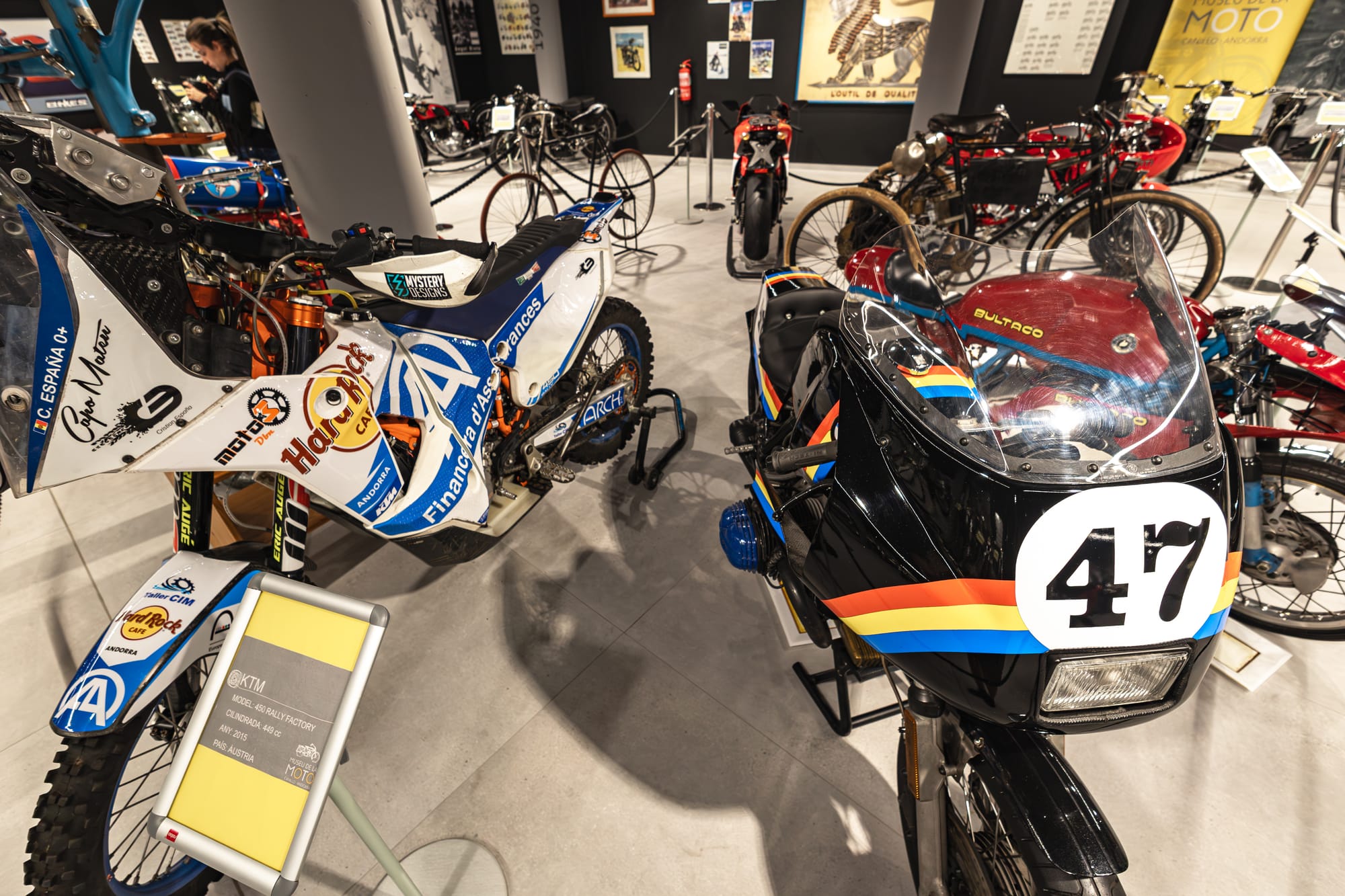 Entre las piezas más singulares se encuentran un Henry Capel Loft Holden de 1896 y un Diamante de 1900ambos al vapor, uno Cleveland estadounidense de 1915A 1968 solo electra (una de las primeras motos eléctricas de la historia) y varios modelos de la Rally Dakar dado por el piloto Cyril Despres. Todas las motocicletas están prestadas por coleccionistas privados andorranos.