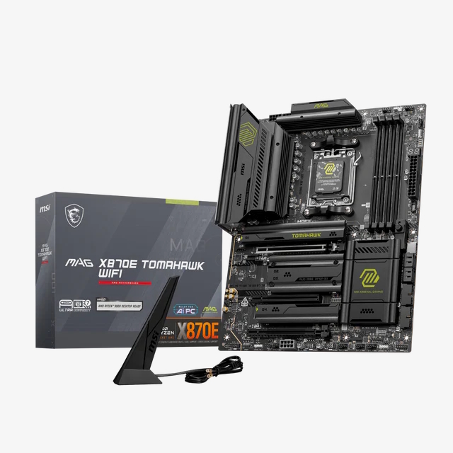 - MSI MAG X870E Tomahawk WIFI: Una excelente opción para instalar Ryzen 7000 o Ryzen 9000 de alta gama. Es compatible con memoria DDR5 de 8400 MT/s, tiene el mejor sistema de energía de su clase y tiene un sistema de enfriamiento pasivo que cubre todas las áreas críticas de la placa base. Precio de gama alta cercano al rango medio, disponible 325,90€.