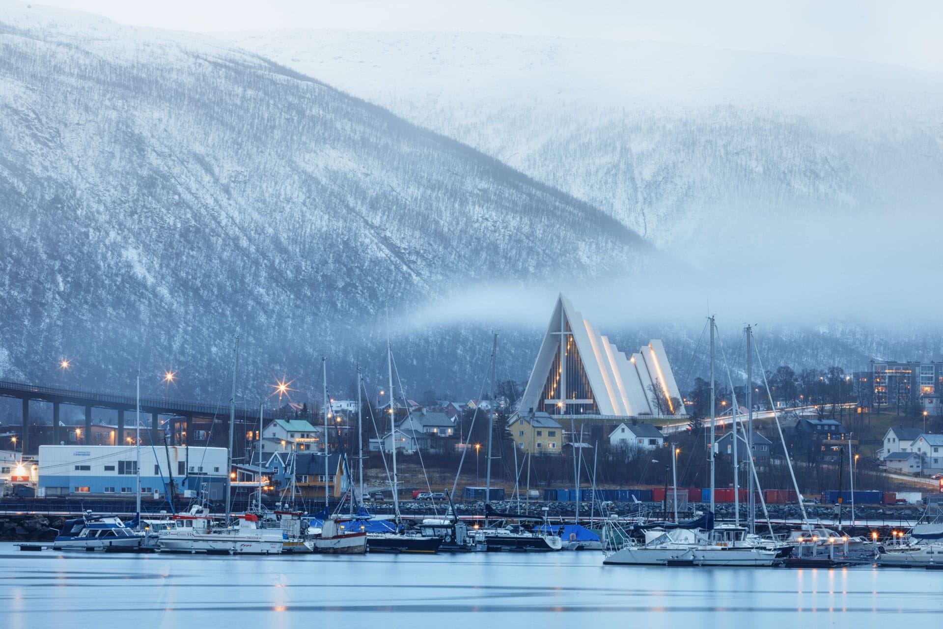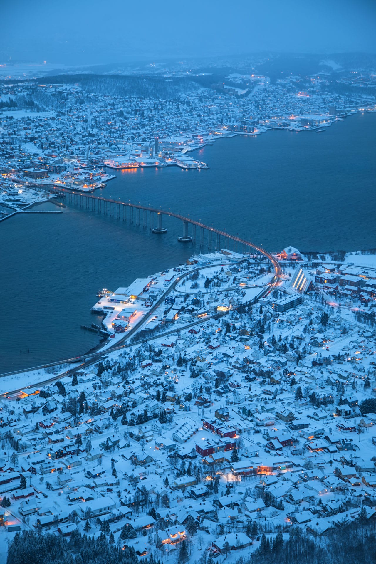 Cepillar el 70º latitud norte y junto al mar es la capital de la región de Norte de Noruega, Tromsøcon 72.000 habitantes. Es una de las ciudades más grandes al norte de Círculo Polar Ártico. Cosmopolita, comercial y llena de eventos culturalestambién se considera el capital de la aurora boreal y tiene el La catedral cristiana más septentrional del mundo..