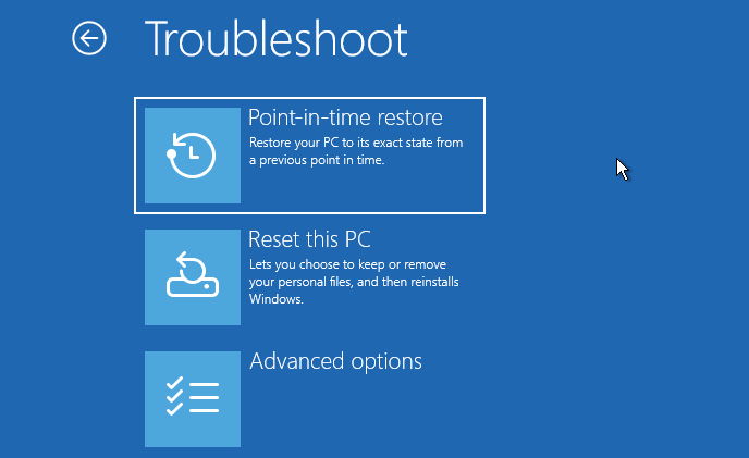 La primera novedad en la opción Restaurar Windows es Restaurar a un momento específico en el tiempoque permitirá a los usuarios «Restaura tu computadora a su estado anterior». Microsoft dice que esta característica debería ayudar a los usuarios a recuperarse de una variedad de problemas, incluidas actualizaciones, controladores problemáticos y errores de configuración.