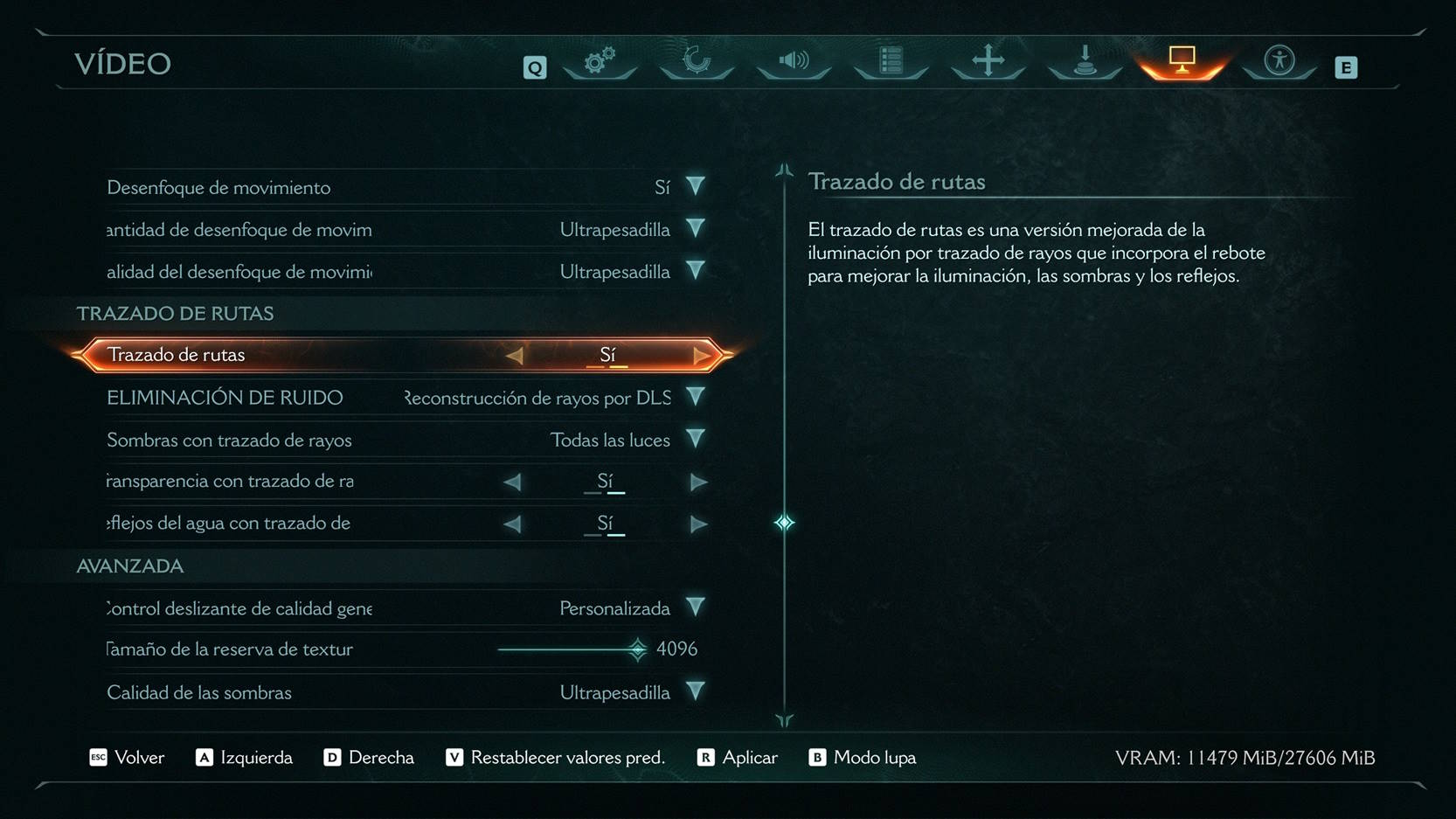 - Reconstrucción de rayos: esta tecnología actúa como un reductor de ruido por IA. Puede mejorar mucho la nitidez y calidad de la imagen cuando aplicamos trazado de trayectorias en juegos, y ayuda a mejorar el rendimiento. Compatible con GeForce RTX 20 y superiores.