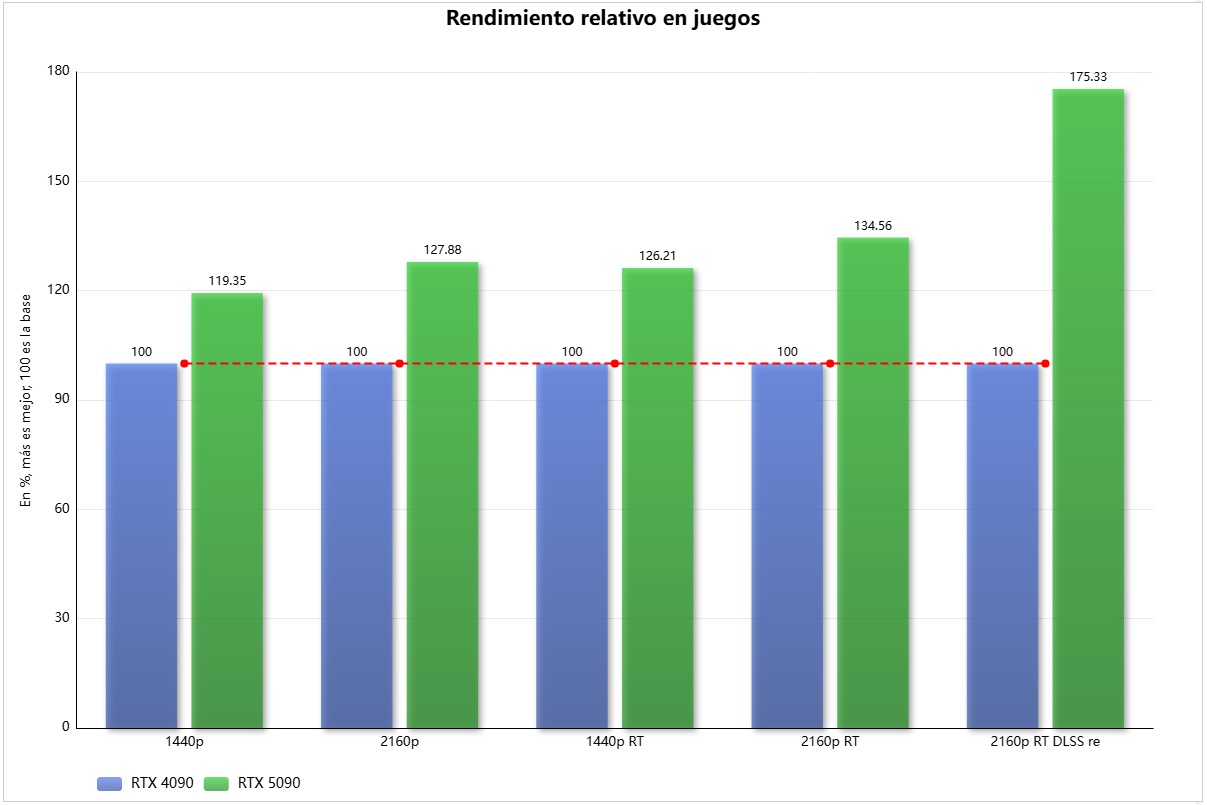 - GeForce RTX 5080: no tiene rival directo en AMD. Es más lenta que la GeForce RTX 4090.