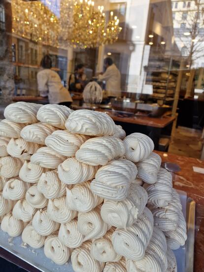 Todos estos nuevos lugares son el termómetro de un barrio definitivamente en la cima de la ola. Pero el peligro de las olas es que pueden arrasar con todo a su paso, vecinos y comercios, para crear un barrio al alcance de unos pocos privilegiados. La mejor noticia es que ante tal desperdicio de sitios Fríoen sus calles todavía se conservan tabernas y restaurantes tradicionales con menús del día, donde los que vivimos aquí llenamos la barriga. La tradicional Taberna Barrutia y 9, con sus chipirones a la tinta; la deliciosa La Tasca Suprema, con sus migas y pisto en parmentiery el premiado cocido a tres vueltas del Nuevo Horno de Santa Teresa son sólo tres ejemplos de que lo tradicional, si es bueno, puede plantar cara a la propuesta gastronómica más colorida. Otro superviviente es la tradicional churrería Santa Teresa, que se codea descaradamente con cafeterías especializadas (cuatro abiertas en poco más de un año) en una calle a sólo 100 metros de distancia, que sirven churros y chocolate como lo hacen desde hace décadas. Hablando de dulces, Las Salesas siempre ha sido un punto de encuentro para los gourmets de la repostería, con La Duquesita como lugar de peregrinación para los amantes de la palma chocolateada. Aux Merveilleux de Fred, la nueva pastelería belga con su taller abierto al público, elaboración ininterrumpida de croissants y cerámicaEs una tentación más que aguarda a quienes traspasan su puerta.