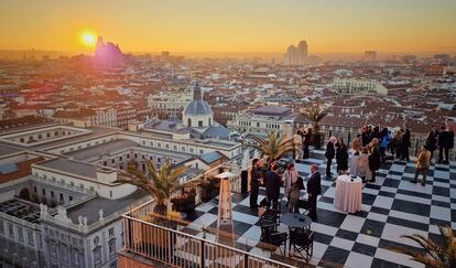 El Club Financiero de Génova, un antiguo club privado, se transformó hace unos años, cuando los «señores del cielo» del grupo Azotea, José Manuel García y Cristina Lasvignes, que gestionan entre otras las emblemáticas terrazas del Círculo de Bellas Artes y Cibeles, tomaron las riendas de este local, confiaron la dirección de la cocina a Nino Redruello (chef del restaurante Fismuler) y lo abrieron para el disfrute de todos. mortales cuyos negocios no cotizan en el Ibex 35. El club sigue siendo privado y, como concesión a sus socios, es necesario llevar chaqueta para acceder a este deslumbrante recinto, que ofrece cada tarde una espectacular puesta de sol sobre la capital.