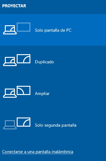 - solo pantalla de computadora : Windows utiliza sólo el monitor principal. El resto no se utiliza.