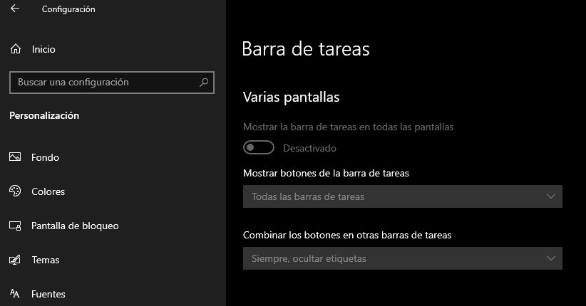 El sistema también permite la expansión barra de tareas Ejecute Windows en varios monitores yendo a Configuración > Personalización > Barra de tareas: