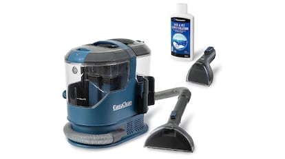 Por qué lo recomendamos: Con un sistema operativo muy similar al de la competencia, viene con dos boquillas: una estrecha para manchas incrustadas y otra más ancha para zonas con menos suciedad acumulada o grandes derrames de agua. Qué está pasando Es una máquina ligeramente menos eficiente que sus competidores, y para manchas como esta (por ejemplo, plastilina en una alfombra) hemos descubierto que es necesario frotar un poco con un cepillo de cerdas antes de pasar la aspiradora para que quede perfecto. Me gustó especialmente lo manejable que es, con un cable de alimentación larguísimo (6 metros) y una manguera de 1,8 metros, suficiente para llegar a cualquier rincón. Viene con una solución limpiadora de alfombras incluida que deja un olor muy agradable.