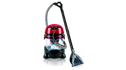 Por qué lo recomendamos: La alfombra de mi sala tenía una mancha (creo que era comida) que nunca pude quitar por completo. Bueno, gracias al spray de agua de esta aspiradora, ¡finalmente lo logré! La succión es bastante buena, pero es cierto que en superficies, por ejemplo con mucho pelo de mascota, tuve que hacerlo varias veces. También me ha gustado su versatilidad en cuanto a accesorios: incluye una boquilla 2 en 1 para llegar a rincones muy pequeños, un cepillo normal para tapizados más gruesos y un cepillo de goma para fibras más delicadas. También puedes usarlo de forma inalámbrica, por lo que es una solución muy cómoda, por ejemplo para el coche.