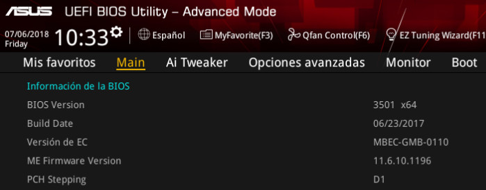 • La forma clásica de saber si en algún ordenador está instalada la última versión es accediendo a la propia BIOS. Una vez allí encontraremos la versión en la información del sistema: