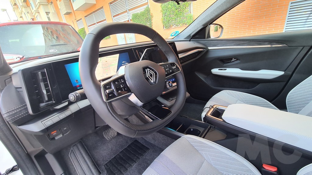 Al acceder al interior encontramos el habitual cuidado que viene aplicando Renault a sus nuevos modelos con un diseño muy personal. El acabado Iconic prescinde totalmente del cuero animal apostando por materiales reciclados y sostenibles que,sorprendentemente ofrecen un tacto que nos ha parecido más agradable que si fuera una fibra natural. El salpicadero incorpora inserciones de madera de tilo real, algo realmente notable para un coche relativamente asequible, con un tratamiento que resalta su textura natural combinada con textiles técnicos de tacto agradable. Los asientos delanteros son excepcionalmente cómodos y muy aptos para largos viajes y conducción dinámica con un diseño envolvente, ajustes eléctricos y una función de masaje que se agradece en los trayectos largos. Toda una declaración de intenciones que casa muy bien con el resto de características ruteras del modelo.