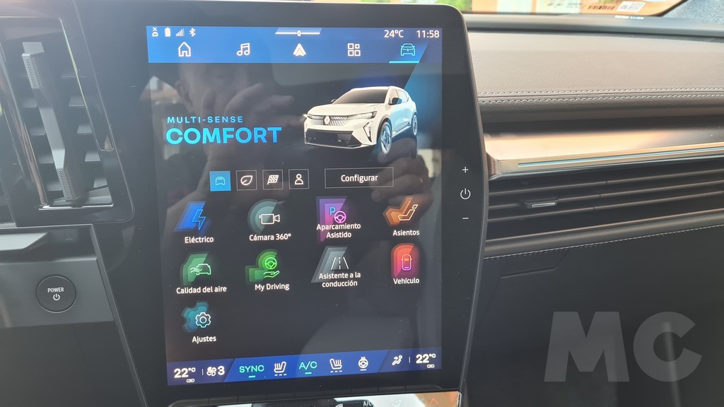 En este acabado tope de gama, el sistema de sonido viene firmado por Harman Kardon, con 9 altavoces y una afinación específica realizada en colaboración con el músico Jean-Michel Jarre, ofreciendo una experiencia acústica inmersiva de primer nivel. La insonorización del habitáculo es notable, gracias al «Cocoon Effect», una tecnología que utiliza una capa de espuma entre la batería y el suelo para amortiguar las vibraciones y el ruido de rodadura. Esto si se suma al silencio habitual de las motorizaciones eléctricas hace que este Scenic sea un buen lugar para escuchar música mientras viajamos.