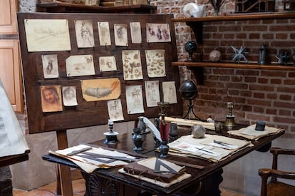 Hay dos planos en este elegante palacio (esa sería otra palabra para nombrar mejor el edificio). De un lado, los salones y dormitorios, que recrean los hábitos cotidianos -descanso, trabajo en el taller- y, del otro, el inmenso y fantástico jardín. Los dos espacios se unen y crean una impresión de unidad. Desde determinadas estancias se podía contemplar el vasto jardín, como vía de acceso al mundo, y cuando hacía buen tiempo se podía pasear por él, como hace hoy cualquier viajero. La visita se convierte entonces en una oportunidad para seguir los pasos de Leonardo da Vinci en sus últimos años.