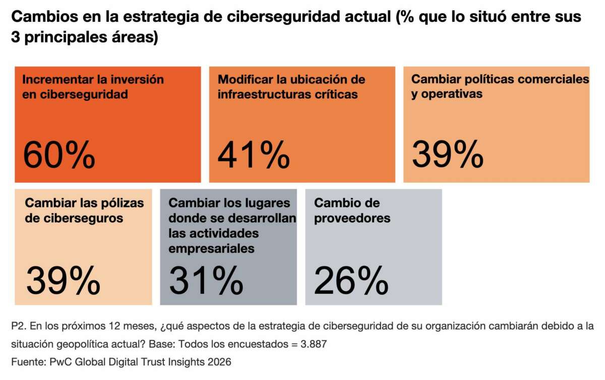 En un mundo donde cada clic abre una nueva puerta al riesgo, la mayoría de las organizaciones continúan persiguiendo amenazas. Solo 6% de las empresas se considera verdaderamente preparado para afrontar todas las vulnerabilidades de ciberseguridad que le afectan, según el Informe PwC Global Digital Trust Insights 2026elaborado a partir de una encuesta de 3.887 ejecutivos de empresa y tecnología en 72 países, entre ellos España.