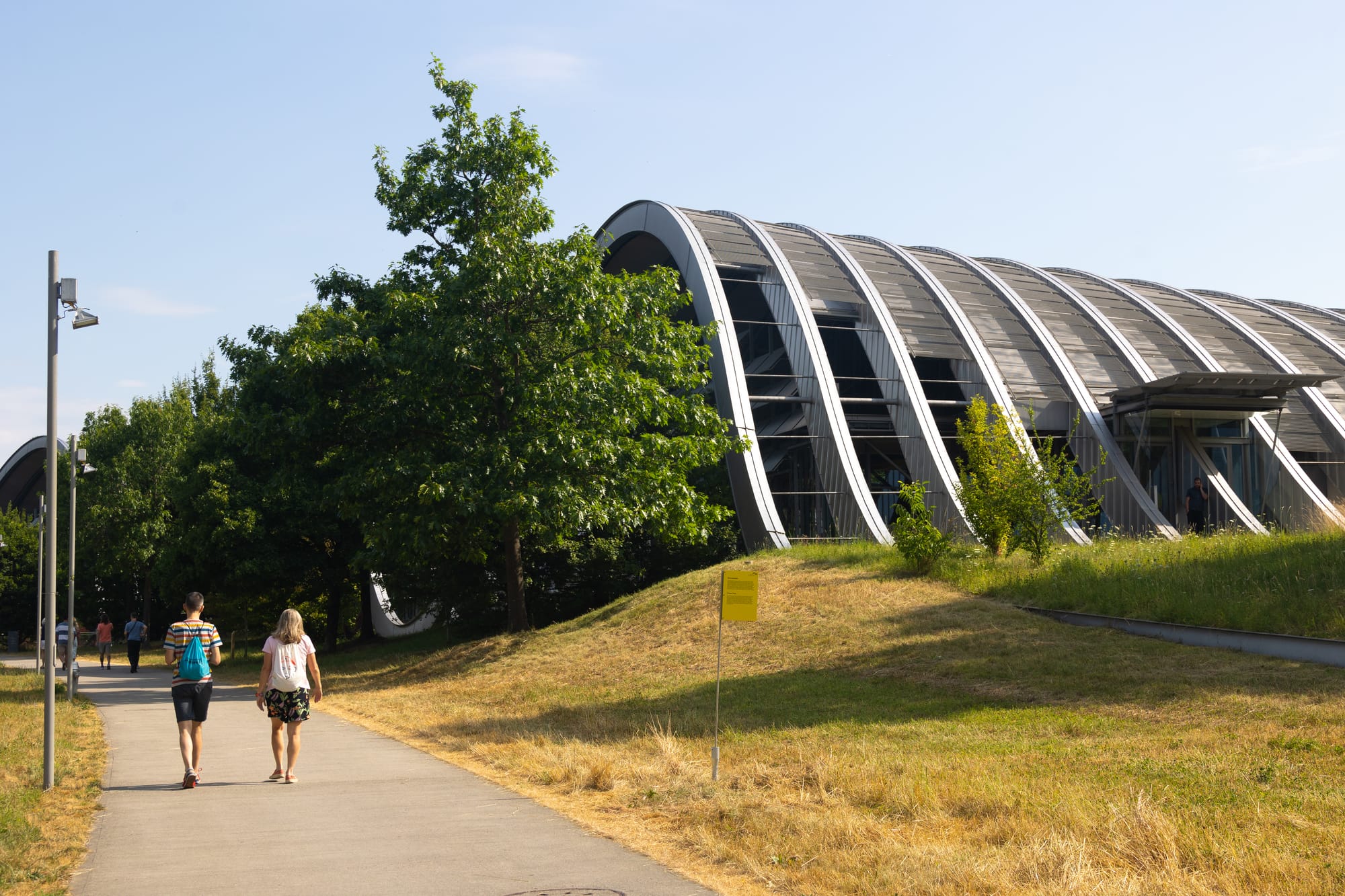 La construcción se levanta como tres suaves colinas que parecen surgir del suelo como olas petrificadasintegrando arquitectura y topografía. Su posición es deliberada: está cerca de la Cementerio SchösshaldeO klee está enterrado, lo que casi añade una dimensión contemplativo al conjunto y fortalece el vínculo entre la artistasu sitio de construcción y el alrededor.