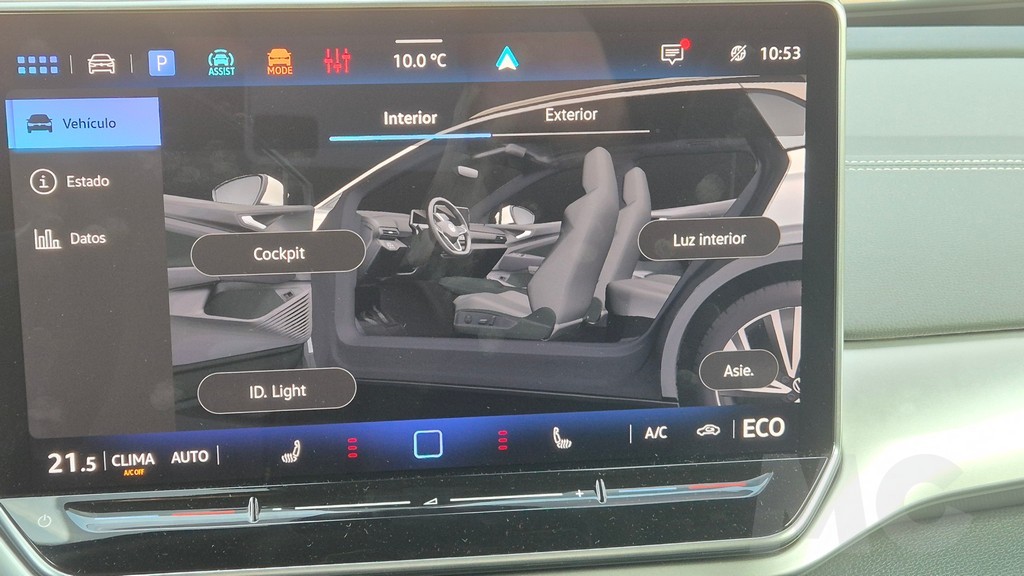 Es un elemento original y no intrusivo que contribuye a la sensación de modernidad del habitáculo. Las críticas más recurrentes al sistema apuntan a la excesiva dependencia de superficies táctiles, tanto en la pantalla como en los controles del volante, que obligan a desviar la vista de la carretera para ajustar el volumen o la temperatura del climatizador. Es un problema que Volkswagen ha reconocido al recuperar botones físicos en modelos como el GTI 2025, pero que en el ID.4 todavía no se ha corregido.