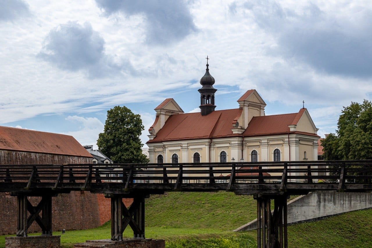 Al sur del palacio se encuentra el edificio religioso más importante de la ciudad, uno de los mayores templos polacos, diseñado por Bernardo Morando con un aspecto “achaparrado” pero de gran sobriedad clásica en su exterior y de esbeltas proporciones en su interior con una alta nave central decorada con un entablamento tallado con rosetones entre las ménsulas de la cornisa saliente: hasta 85, no habiendo dos iguales. Al parecer, retaron al cantero a no repetir patrón en los rosetones y él respondió: “sujétame el nalewka”.