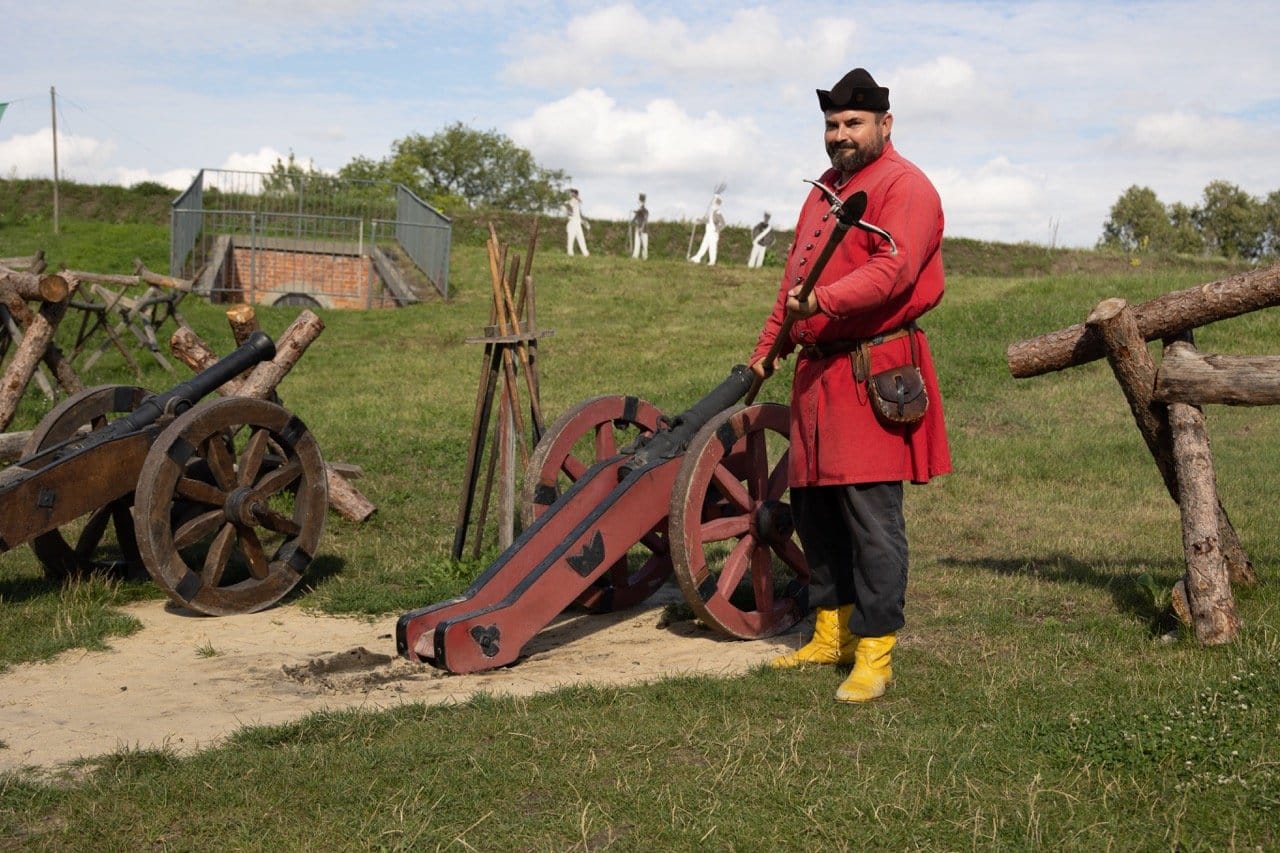 El atrincheramiento exterior del bastión es un edificio monumental de dos plantas en ladrillo rojo con arcadas, almenas y frisos de mampostería. En realidad, fue construido a principios del XIX y en tiempos de guerra se ocupó de emplazar las baterías de defensa. Aún hoy se pueden disparar los cañones… aunque con balas de paja.